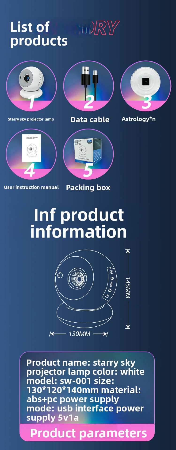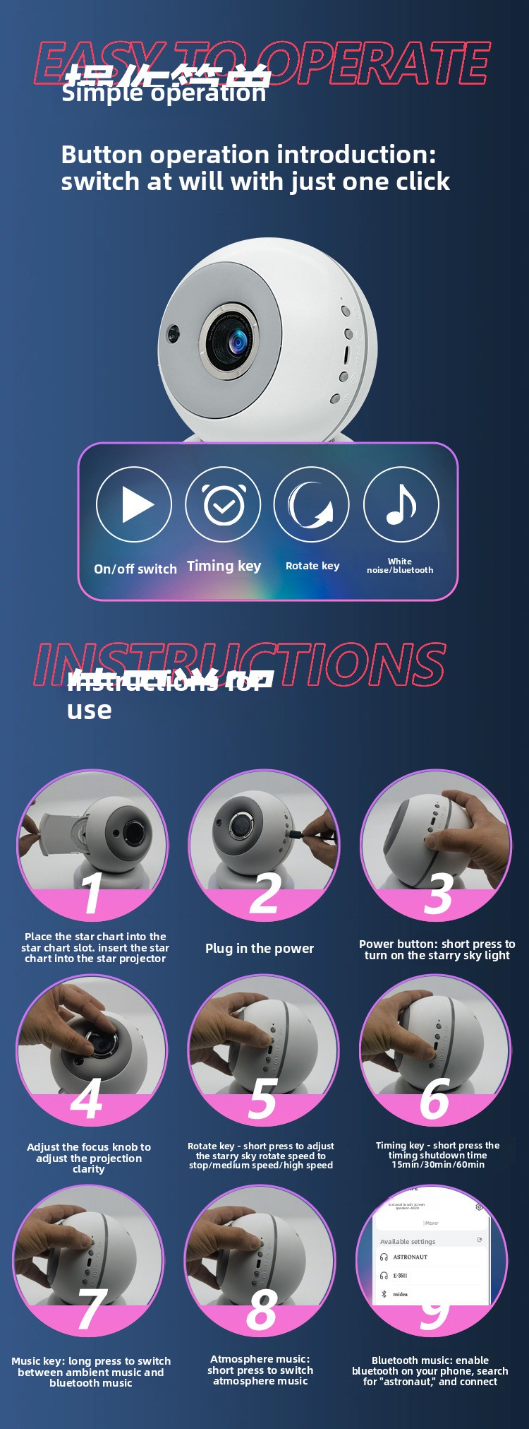 OverviewStarry Projection - Creates immersive starry sky and galaxy projections for a dreamy bedroom atmosphere.Multi-functionality - Combines night light, ambient lighting, and optional Bluetooth music features.Modern Design - Features geometric, minimalist...
