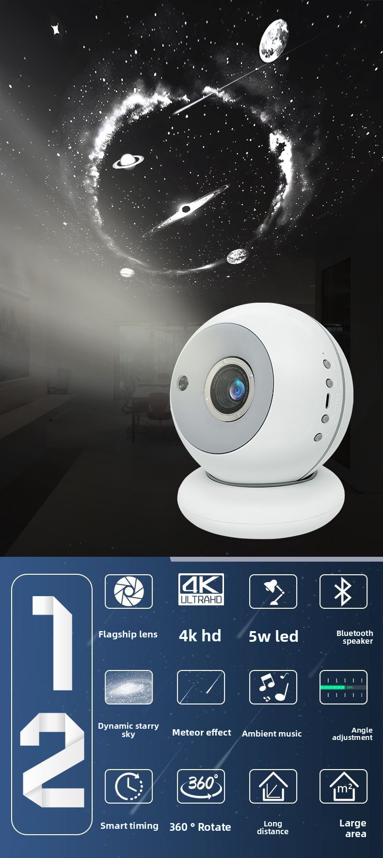 Starry Projection - Creates immersive starry sky and galaxy projections for a dreamy bedroom atmosphere.