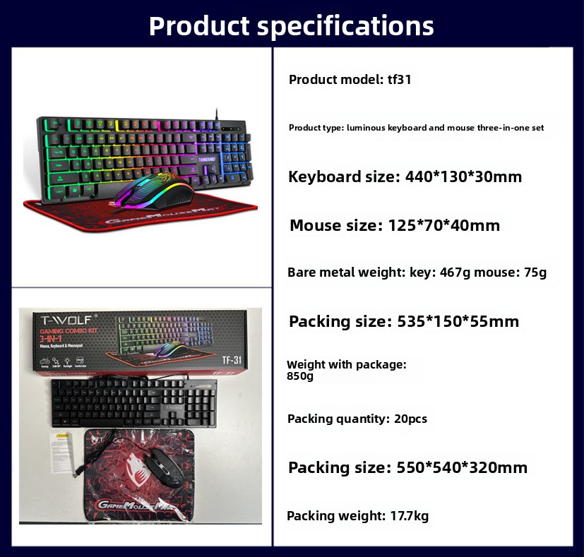 Complete Set: Includes keyboard, mouse, and mouse pad for a full gaming setup.