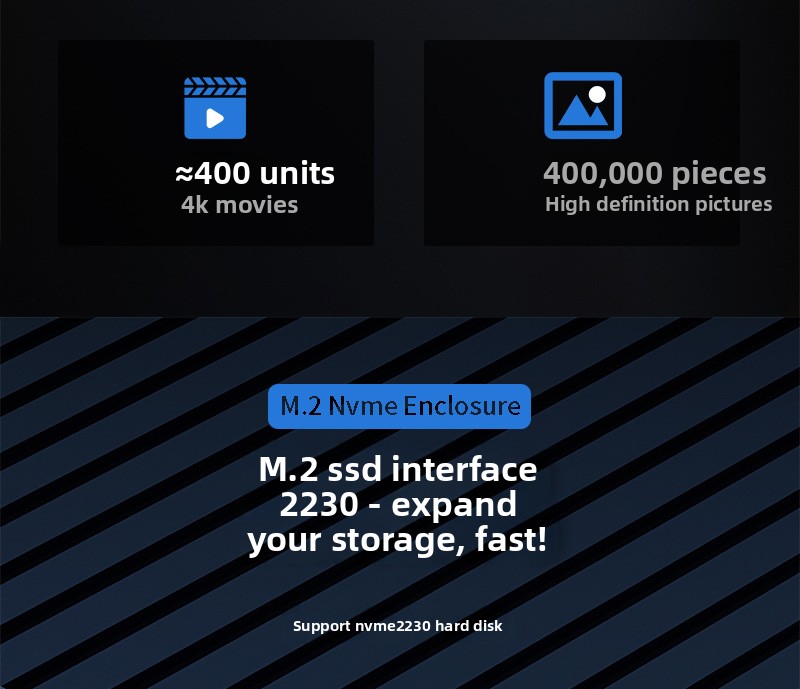 Large Capacity Support: Accommodates up to 4TB NVMe SSDs.