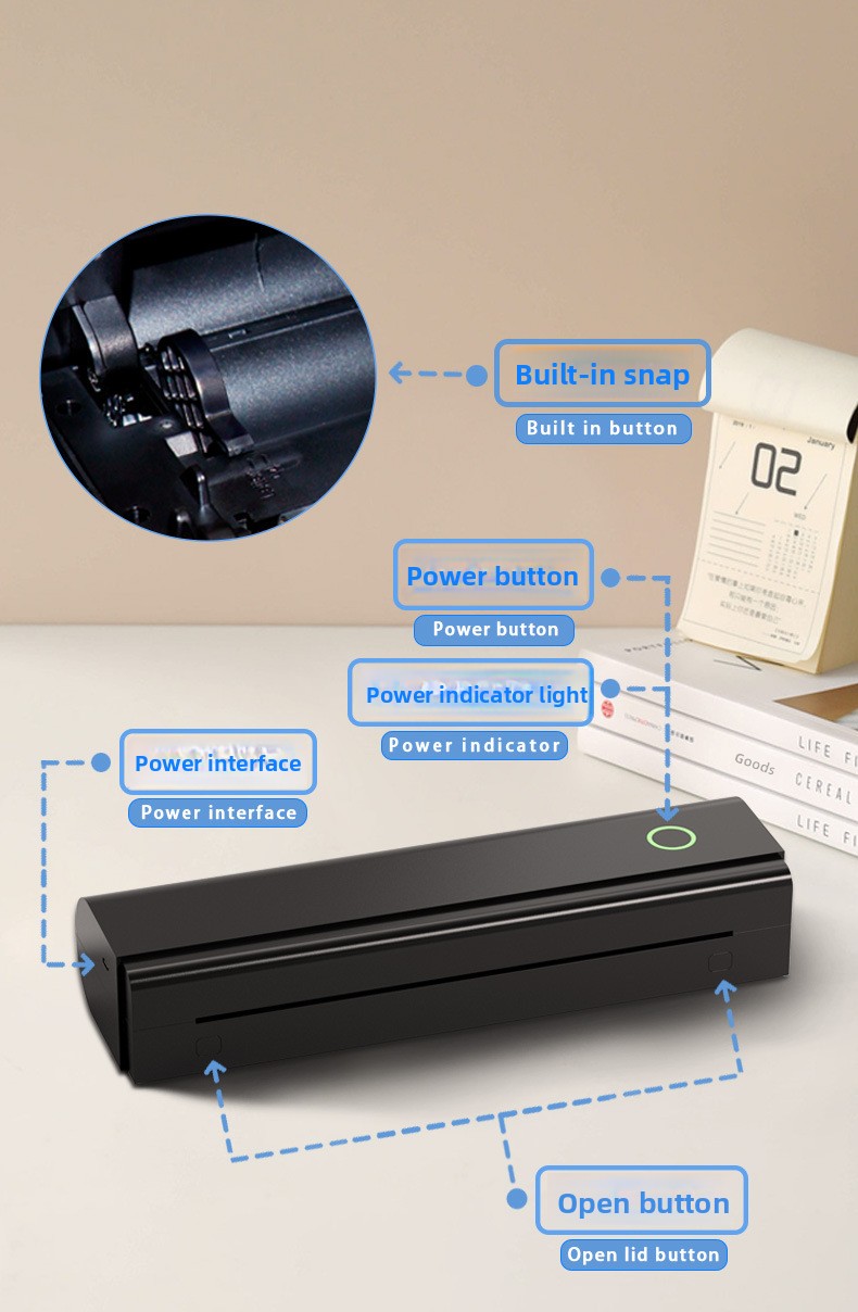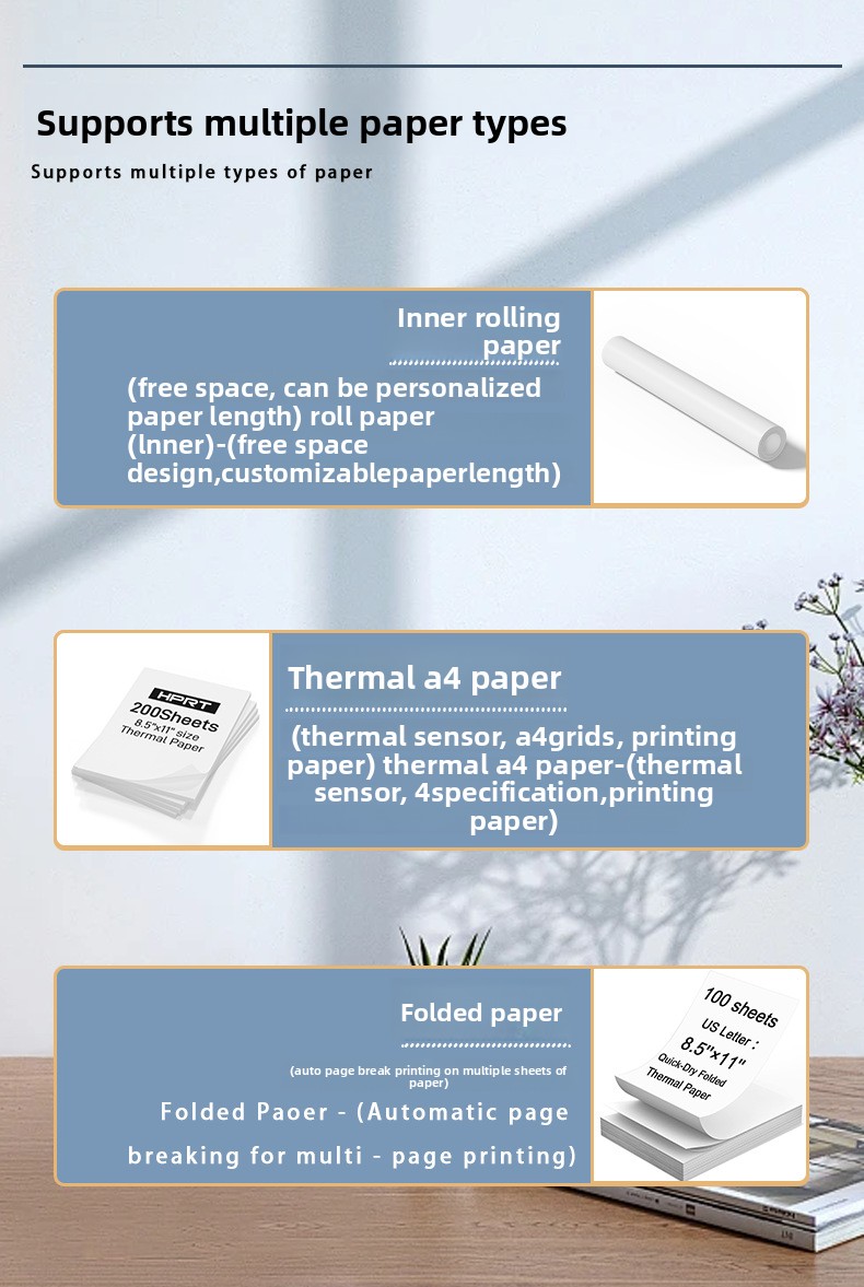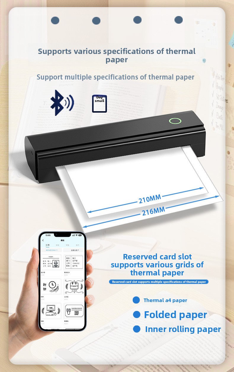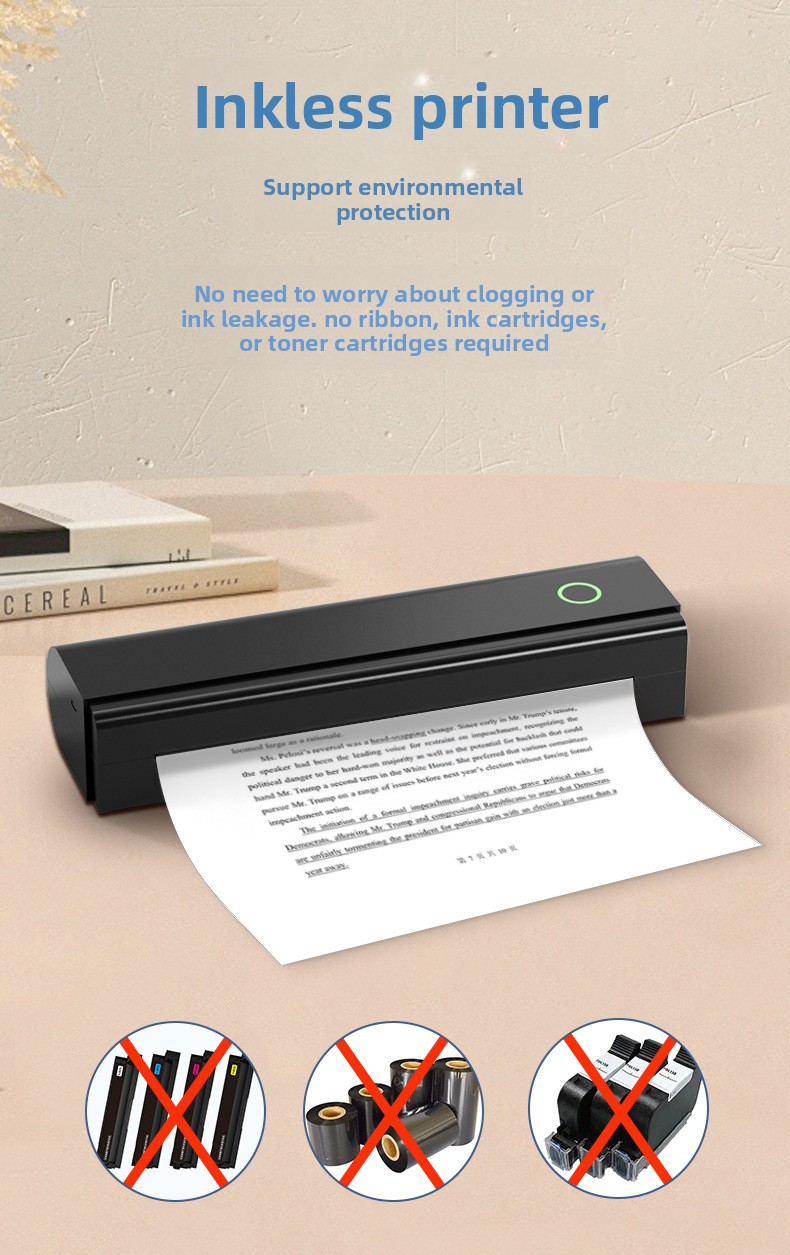 Inkless Printing: Uses thermal paper, no ink or toner required.