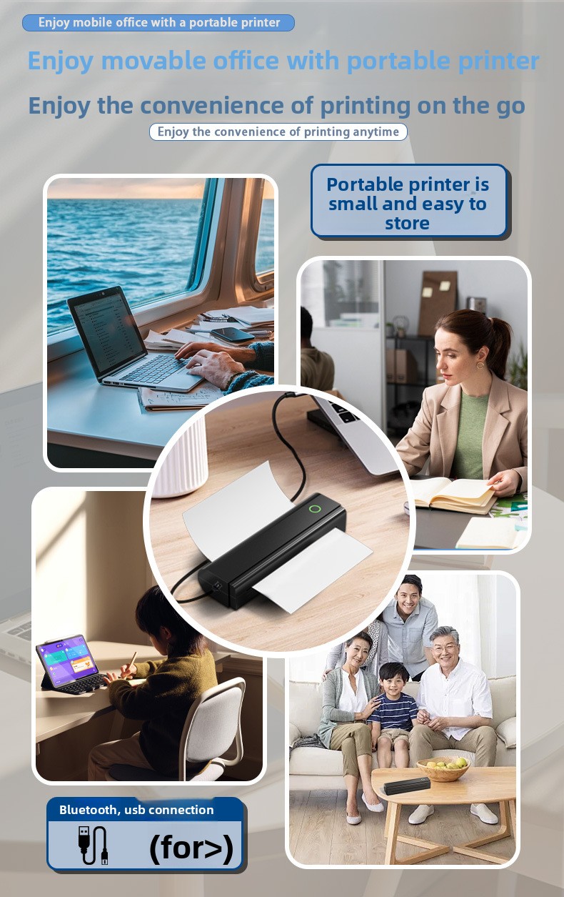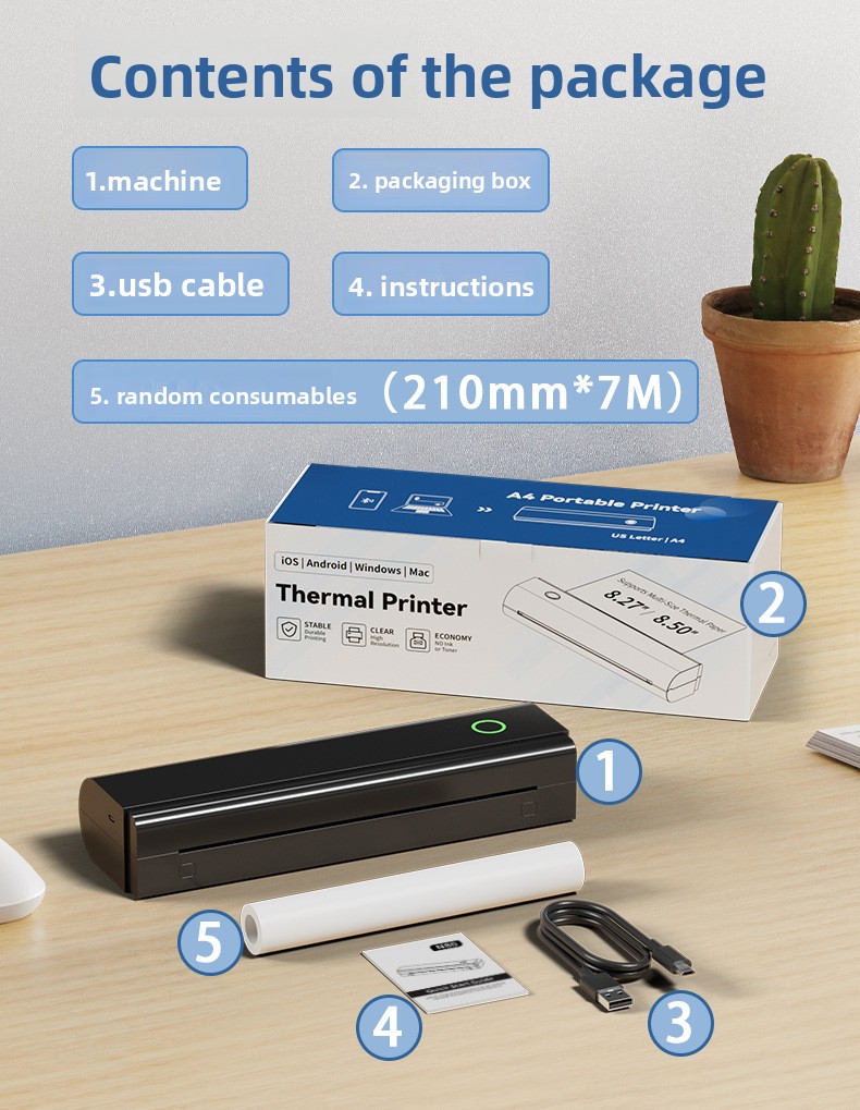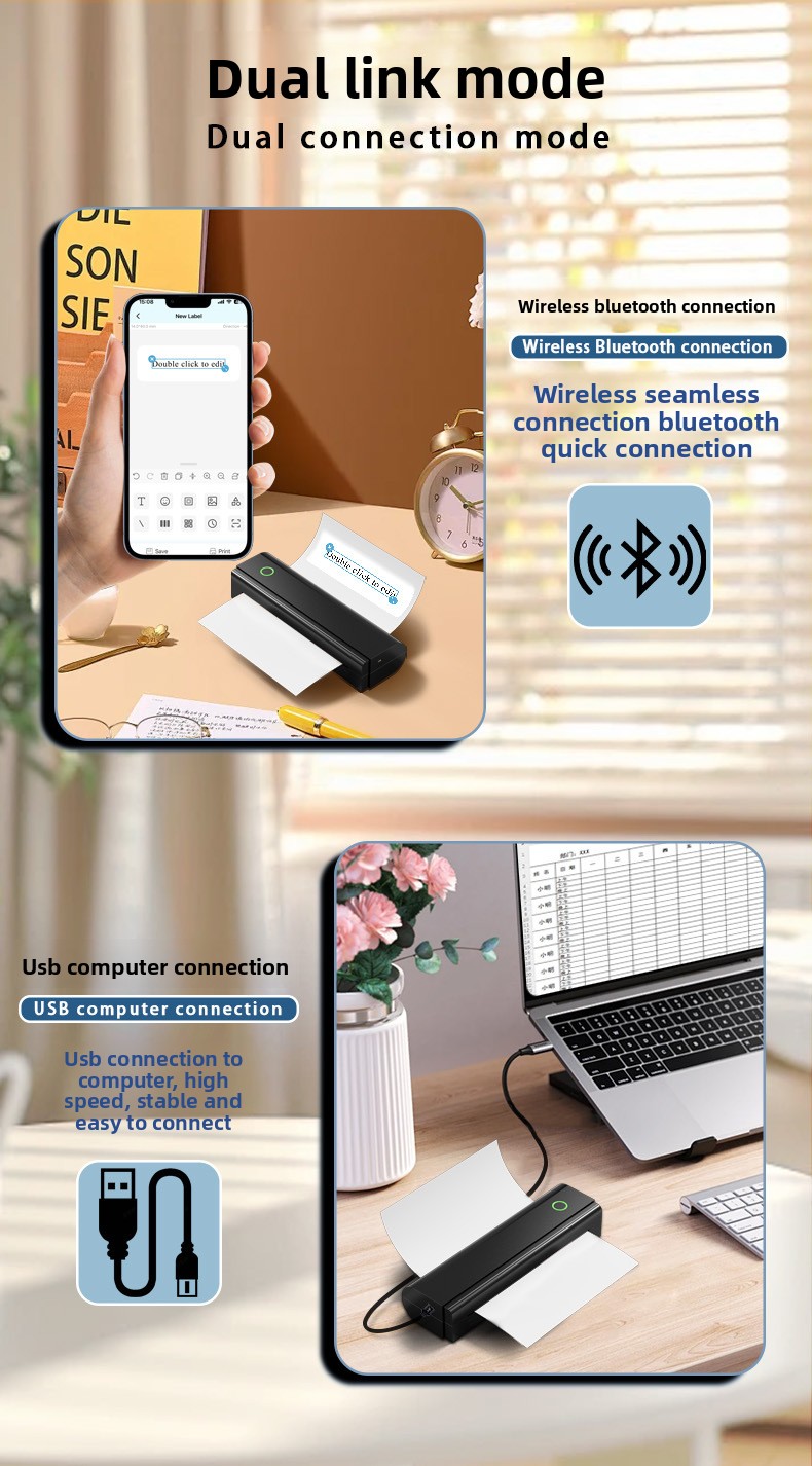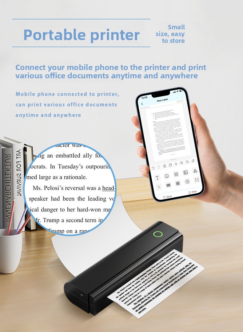 Inkless Printing: Uses thermal paper, no ink or toner required.